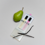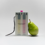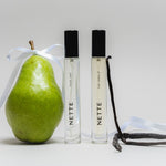 The Bestsellers Set features two of Nette’s most beloved eaux de parfum. Pear Jam is a fruity floral fragrance grounded in luscious pear scientifically backed to boost feelings of joy. Thé Vanille is a sophisticated vanilla fragrance with tea notes scientifically backed to boost confidence and mindfulness.