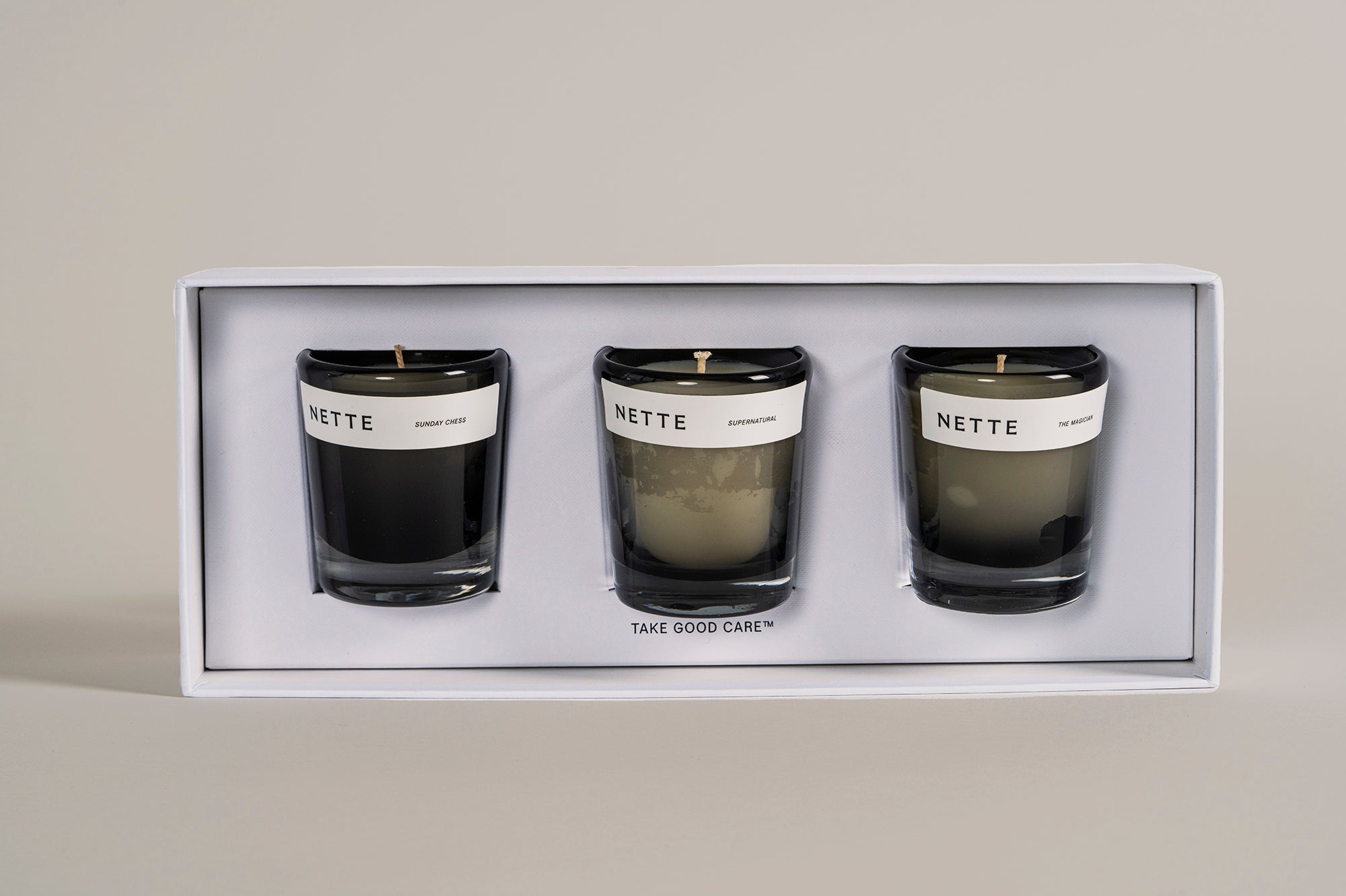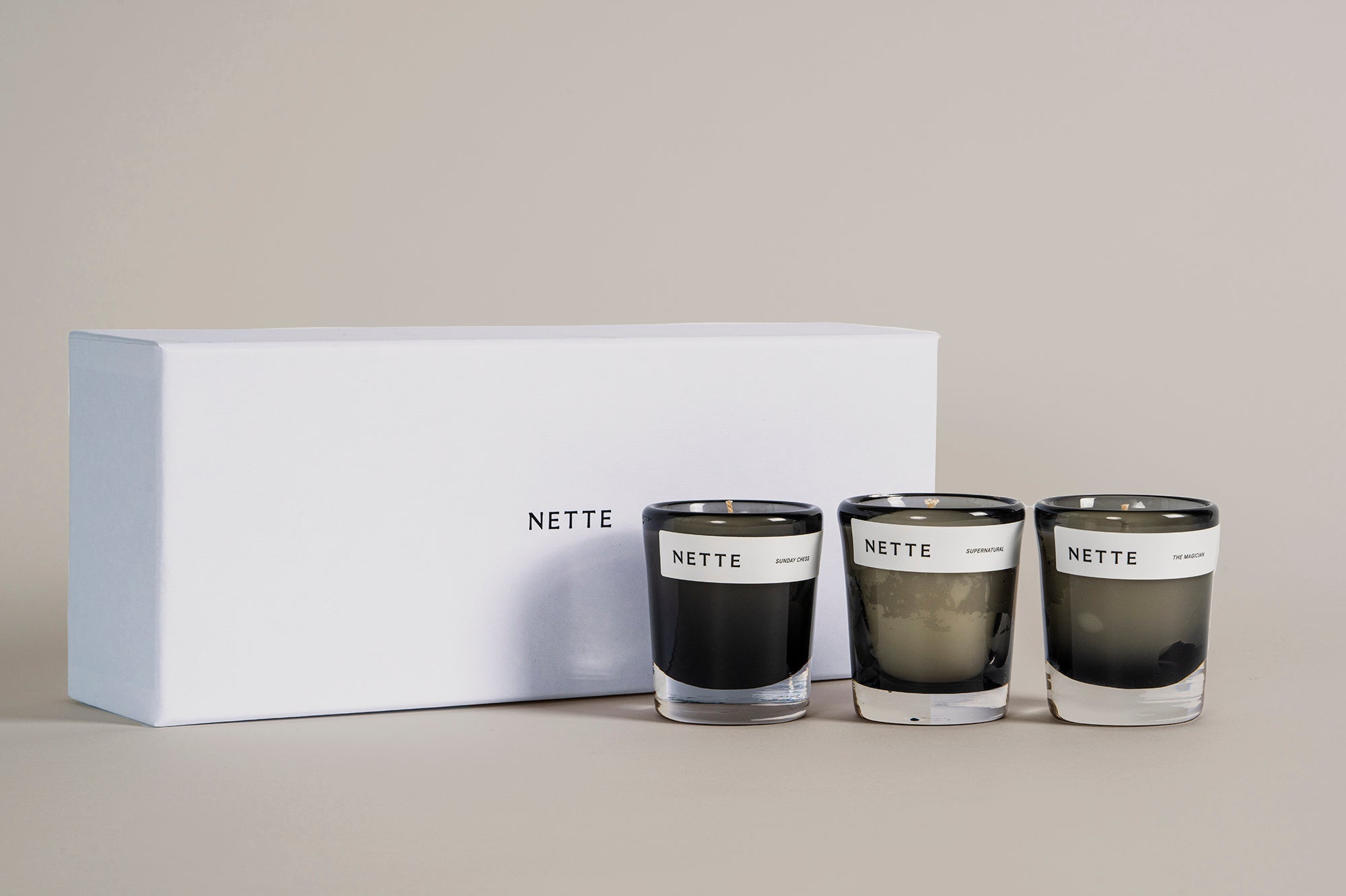 The cutest minis in our smokiest, most mysterious best-selling scents: experience Supernatural, The Magician, and Sunday chess in handblown glass votives.