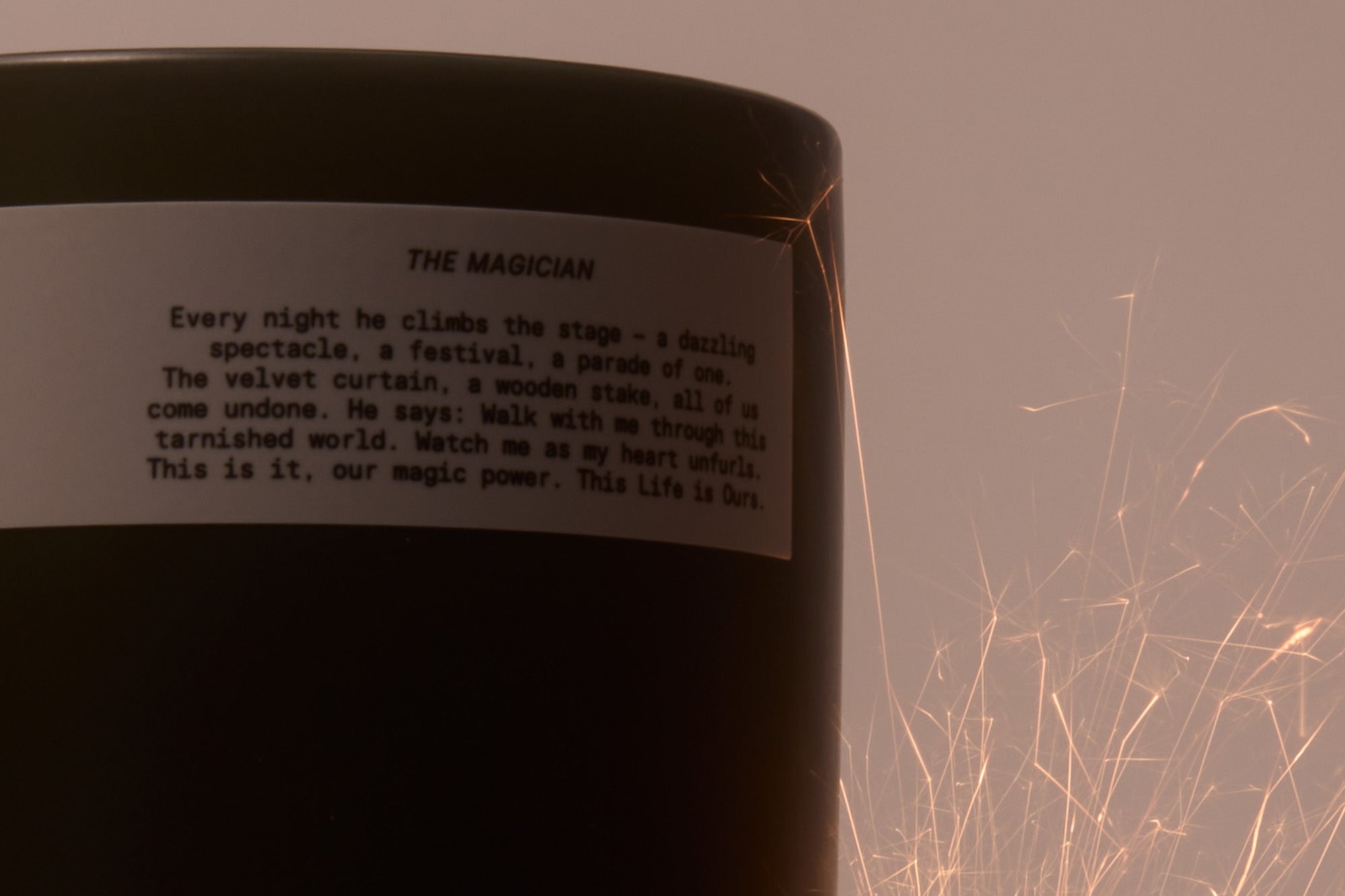 “The Magician is my take on a truly transportive wood scent. I love how the sandalwood and palo santo feel both grounding and a little mystical.”